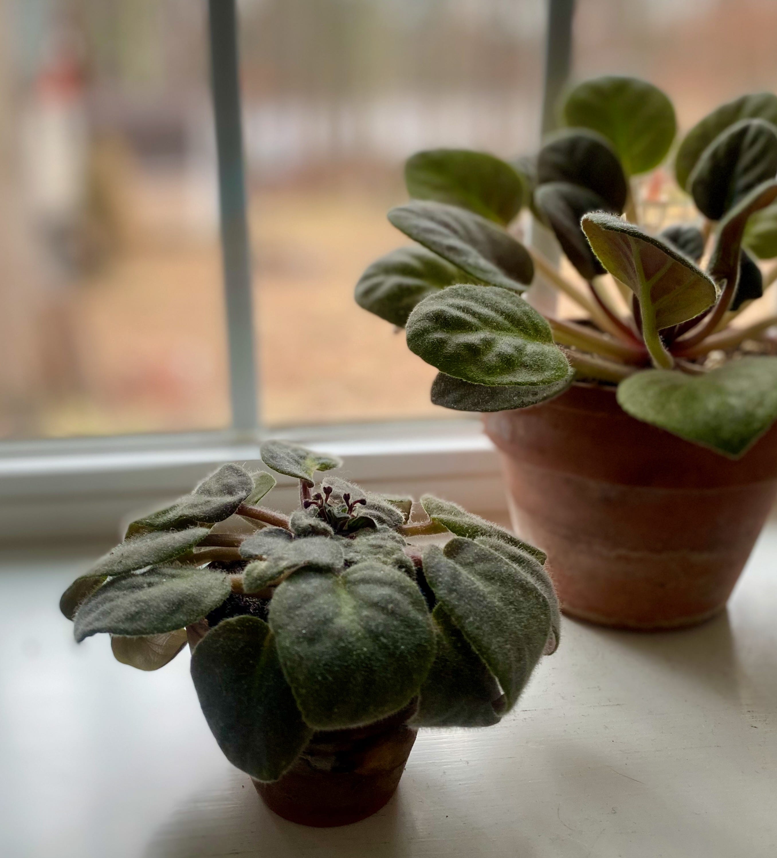 There is a pair of African violets on my windowsill, both saved from death with two salvaged leaves. One has been tended properly, moved to a larger pot as it grew. The other, less than half the size of its companion, has been left to languish because the person responsible for its care never managed to find another suitably-sized container. The smaller, neglected plant is getting ready to bloom.